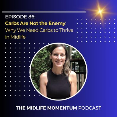 midlifestressmidlifenutritionmidlifemomentumpodcastreenergizedinmidlifeenergybuildingmusclecarbscarbsinmidlifecarbohydratesinsulinbloating
