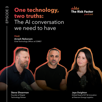 In this episode of The Risk Factor, Arrash Nekonam, CTO at COMET, is joined by Jaye Deighton, Global Head of ICT & Innovation at Peterson Control Union, and tech entrepreneur Steve Shearman to examine the tension at the heart of AI adoption.