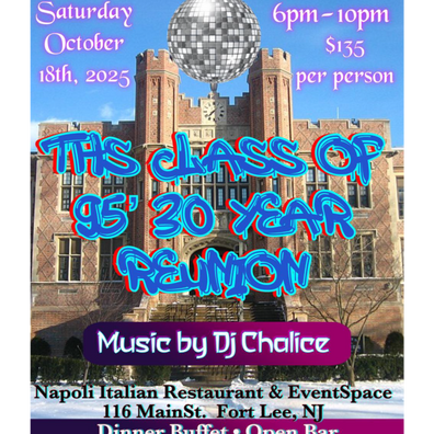 The evening is at Napoli Restaurant & Event Space, Fort Lee, NJ from 6pm-10pm