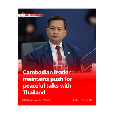 Cambodian leader maintains push for peaceful talks with ThailandThe Cambodia Daily English by The Cambodia Daily 02:31RSS feed Support Independent MediaShare