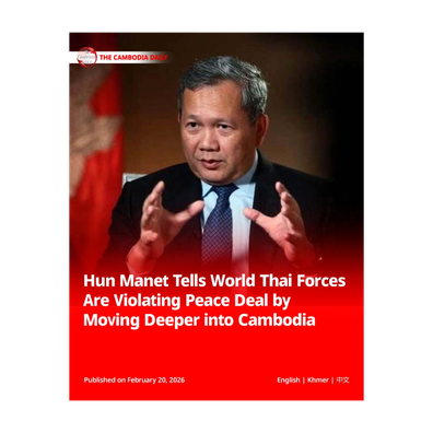Hun Manet Tells World Thai Forces Are Violating Peace Deal by Moving Deeper into CambodiaThe Cambodia Daily English by The Cambodia Daily 02:14RSS feed Support Independent MediaShare
