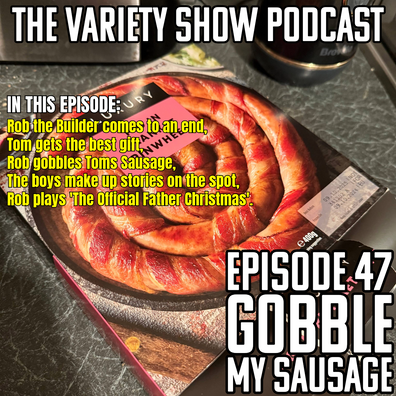 Tom’s been to Iceland with all the mums, he bought a giant sausage. Rob has reservations about gobbling Tom’s sausage but he’s not going to get the choice. Om nom nom.