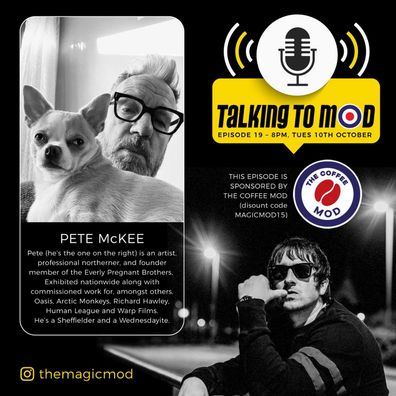 This week on Talking to Mod we are joined by Pete Mckee professional Artist and founding member of the Everly Pregnant Brothers. Pete's work is exhibited nationwide along with commissioned work for such greats as Oasis, Arctic Monkeys, Richard Hawley, Human League and Warp Films to name a few!
