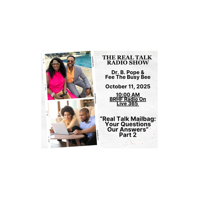 Real Talk with Dr. B. Pope and Fee the Busy Bee is where honesty meets heart. Dr. B. Pope and Fee dive into listeners’ emails, tackling real-life questions about love, dating, marriage, and everything in between. With wisdom, humor, and a touch of tough love, they unpack the highs and lows of relationships, offering practical advice and fresh perspectives. No topic is off limits—if it’s on your mind, it’s on the table. Tune in for conversations that feel personal, authentic, and always real. This is Part 2 of the series.