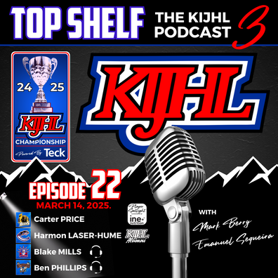 This week on Top Shelf: The KIJHL Podcast … PLAYOFF EDITION … The ine+nutrition player spotlight shines on … Carter Price, Captain of the Grand Forks Border Bruins ... Emanuel talks with Creston Valley Thunder Cat alum … Harmon Laser-Hume, he’s with the Mount Royal University Cougars, who are off to the USports National Championship Tournament next week … Mark is joined by broadcasters … Blake Mills with the Kamloops Storm and … Ben Phillips with the Beaver Valley Nitehawks.