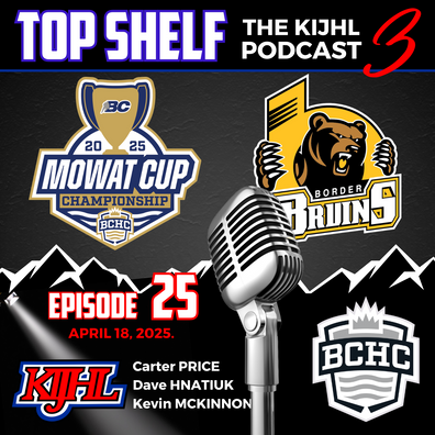 Today on Top Shelf … Part 2 of our Mowat Cup episodes. It’s all about the Grand Forks Border Bruins today with guests Captain Carter Price … Head Coach/General Manager Dave Hnatiuk and the ‘Voice of the Bruins’ Kevin McKinnon …
