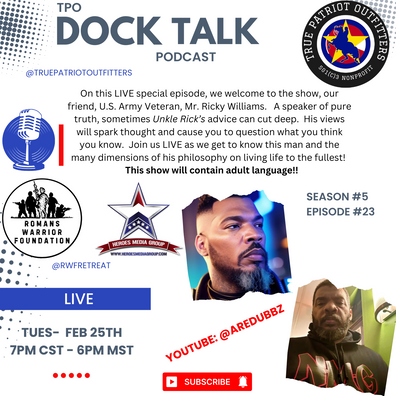 On this LIVE special episode, we welcome to the show, our friend, U.S. Army Veteran, Mr. Ricky Williams. A speaker of pure truth, sometimes Unkle Rick’s advice can cut deep. His views will spark thought and cause you to question what you think you know. Join us LIVE as we get to know this man and the many dimensions of his philosophy on living life to the fullest! 🔥This show will contain adult language!!🔥