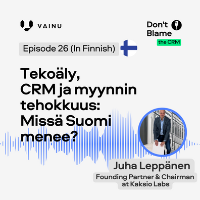 Tässä jaksossa Mikko Honkasen, Vainun yksi perustajista, vieraana on Kaksio Labs:in Juha Leppänen. Juha toimii sekä puheenjohtajana että perustajana Kaksiolla. Keskustelun teemana on tekoäly, CRM ja myynnin tehokkuus. Lisäksi pohditaan, missä Suomi menee edellä mainittujen asioiden kohdalla.