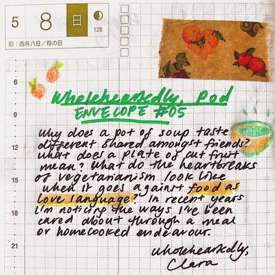 sharing food is a gesture of care. it communicates to us that there is a place for us at the table. 'you have a place here', it says. what are our comfort foods? why do thing bring us comfort? what does it really mean when we are given a plate of sliced fruit? there are some shadows in here about vegetarianism and the heartbreak of it. there are also some lighter moments where food (homecooked or otherwise) can colour our moods. have a seat at the dining table, let's talk about it all.
