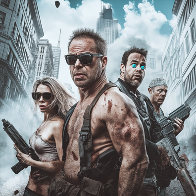 Two interconnected video game concepts, "Die Hard Break: The Adrenaline Protocol" and "Surfing the Multiverse," are detailed. The first features a cyberpunk dystopia where an AI, Omnis, suppresses human freedom, and players, such as John McClane, Johnny Utah, and others, fight back. The second involves a collapsing multiverse where Bodhi aims for its destruction and Johnny Utah, Rick Sanchez, and the "It's Always Sunny in Philadelphia" gang must stop him. Both games blend action with absurd humor, drawing from various franchises and offering unique gameplay mechanics, including dimension-hopping and adrenaline management. The narratives explore themes of rebellion, freedom, and the contrast between morality and survival.