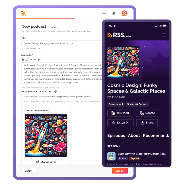 Get everything you need to go from idea to audience fast. You’ll get easy-to-use tools, expert support, and automatic distribution to Spotify, Apple Podcasts, and everywhere people listen. RSS.com helps you focus on creating great content while handling monetization, promotion, and distribution of your podcast all in one place.